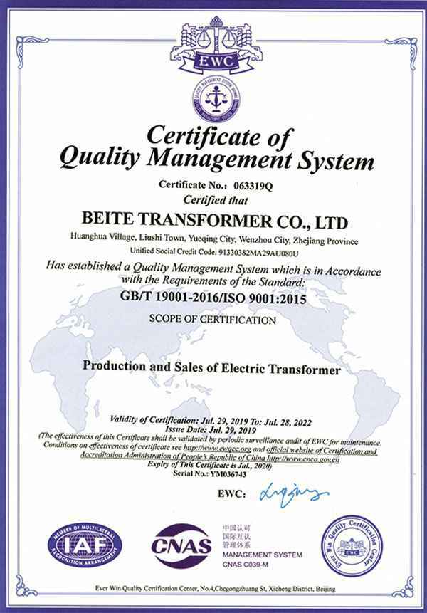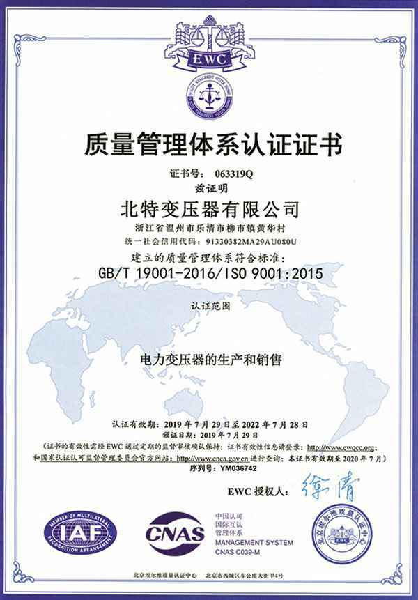 质量管理体系认证证书